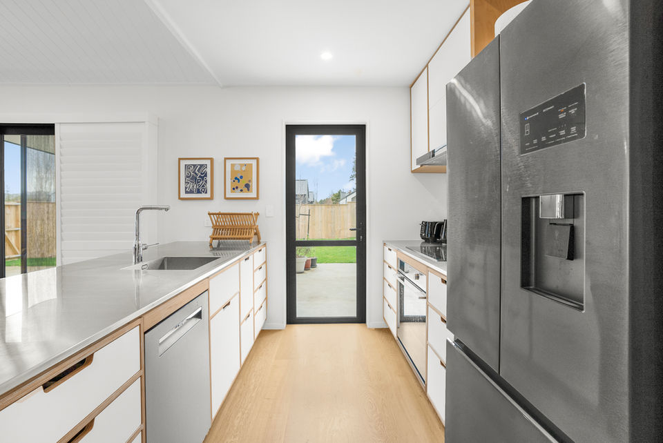 A custom new build in the heart of the Orchard Road subdivision, this 188sqm home includes four bedrooms, two bathrooms, and an impressive blend of function and flair. Highlights include a Stovax internal fireplace and a bespoke kitchen crafted by Make Furniture.